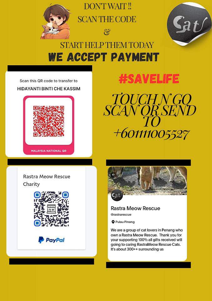 In our care there are currently 80+- cats including motherless kittens, all of whom were rescued from various traumas and illnesses. We really need your help and support in terms of funds, food, medicine volunteer and so on. Every penny you donate is 💯% to finance them here.