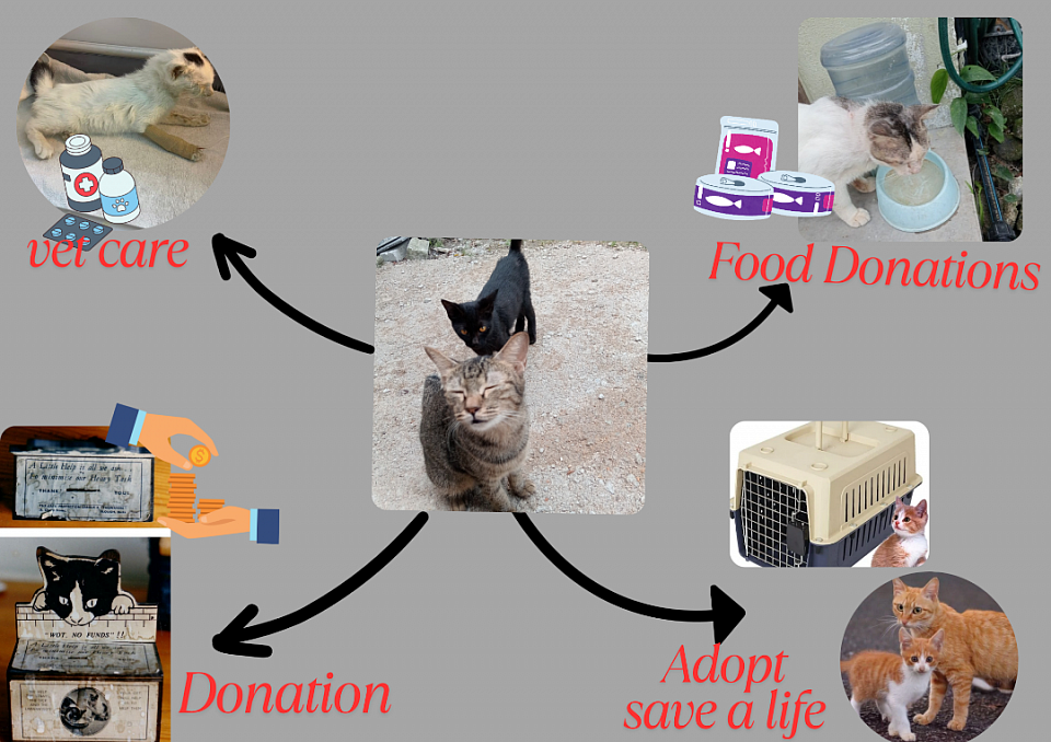 Kindly donate items to the cats. Cat food,cat litter, cleaning supply and other.